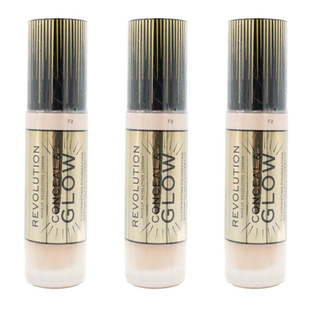 3PK Revolution Conceal & Glow Illuminating Liquid Foundation 23ml Makeup F2