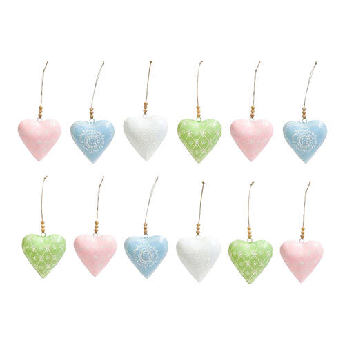 12PK LVD Pattern Heart Hanger Piece Iron/Wood Hanging Ornament 10cm - Assorted