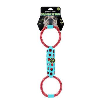 12PK Paws & Claws Squeak & Tug Double Tugger TPR Mesh & Rope 39x12x5cm Assorted