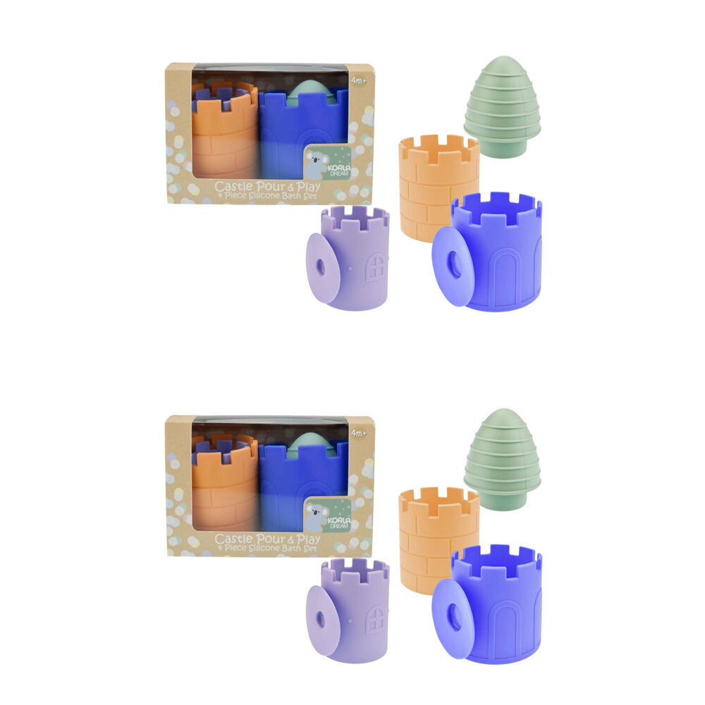 2x 4pc Koala Dream Silicone Baby Castle Pour & Play Bath Toy Playset 4m+
