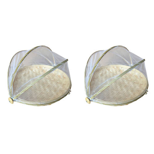 2PK NF Living Mesh & Bamboo Cover 35x18cm Food Tabletop Supplies Collapsible