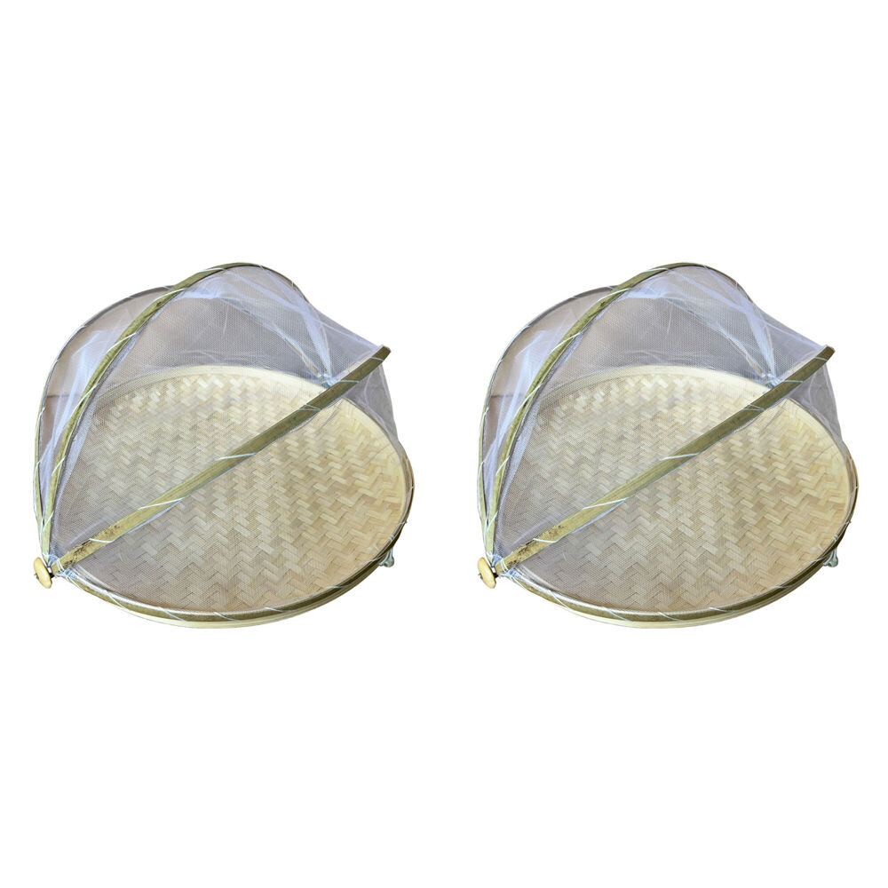 - Stylish and Practical Design Crafted with a natural woven bamboo base and a collapsible mesh dome, adding elegance and convenience to outdoor meals.