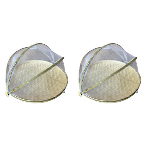 2PK NF Living Mesh & Bamboo Cover 45x22cm Food Tabletop Supplies Collapsible