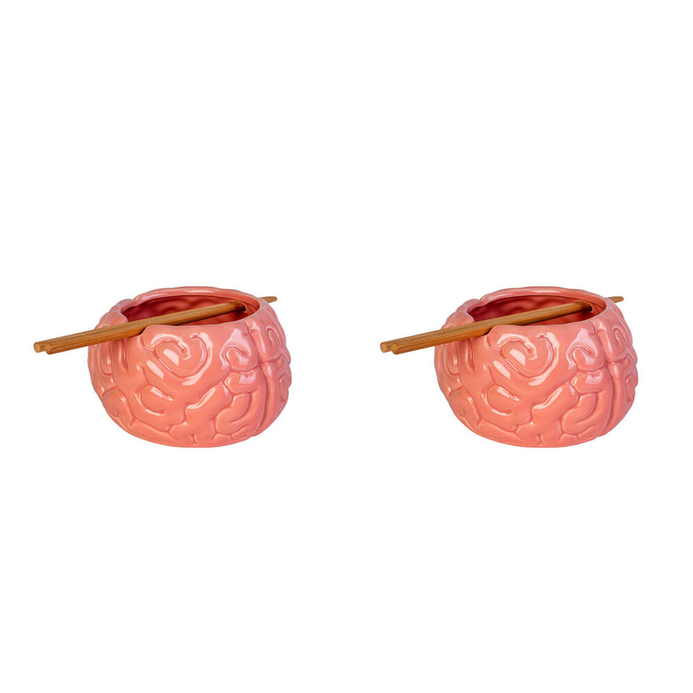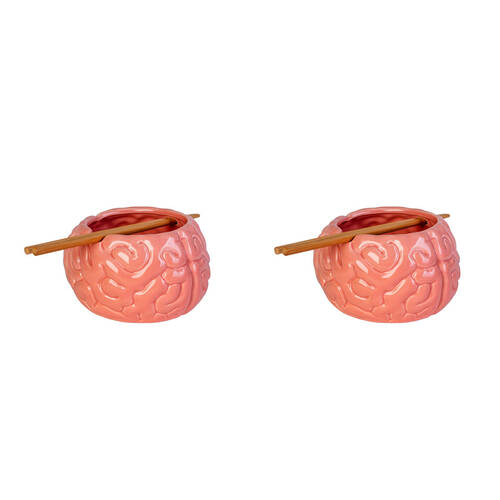 2PK Noodle Bowl W/Chopsticks Brain Contemporary Novelty Pink Ceramic Dinnerware
