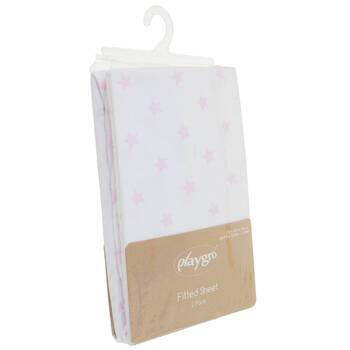 2pc Playgro Home Star Cot Fitted Sheet Pink & White Cotton 73x135x19cm