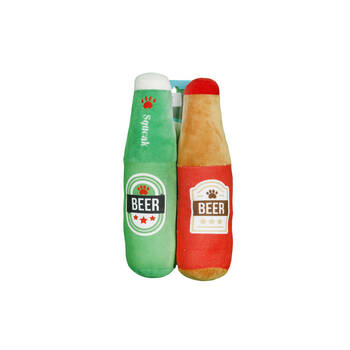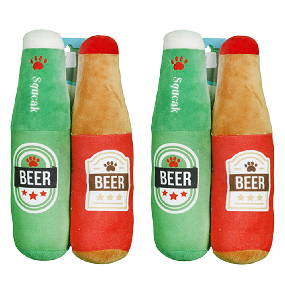 2x 2pc Pro Pet Care Beer Bottle Set Plush Dog Toy With Squeaker 24cm