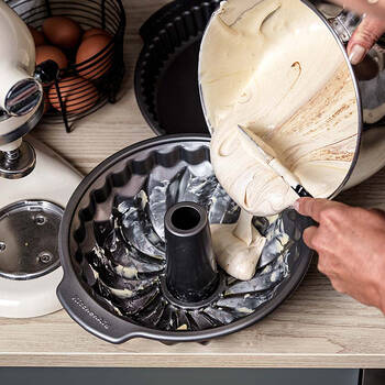 This scratch and corrosion resistant KitchenAid bakeware set includes: spring form pan, tulband cake form and loaf pan made of aluminized steel.Durable PFAS-Free non-stick coating: easy food release and perfect shapes.0.8mm thick body: heats up evenly, doesn’t bend or warp.Easy to clean: wipes clean easily, dishwasher safe.Oven safe: heat-resistant up to 230°C.Includes: