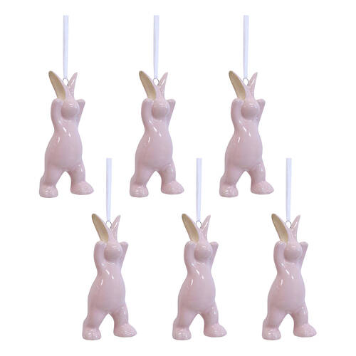 6PK LVD Hanging Bunny Ceramic Ornament Home Decor Pink 10.5cm