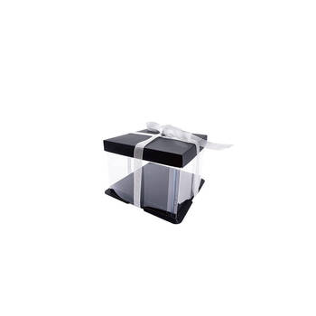 Keep your cakes fresh and protected with this see-through box (26x26x18cm, assorted black/white)