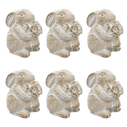 6PK Urban Ceramic Fable Bunny Ornament Outdoor Garden Decor 10cm Bisque