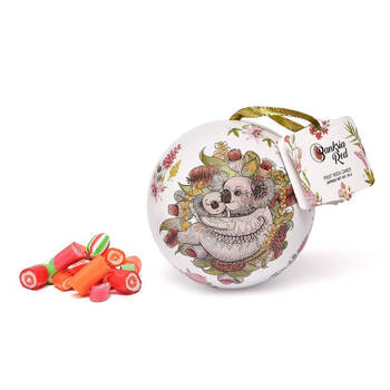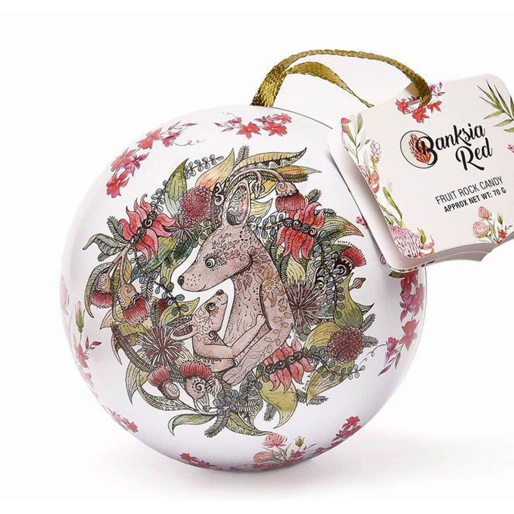 Banksia Red Kangaroo/Koala Christmas Bauble Tins w/Fruit Rock Candy 70g Assorted