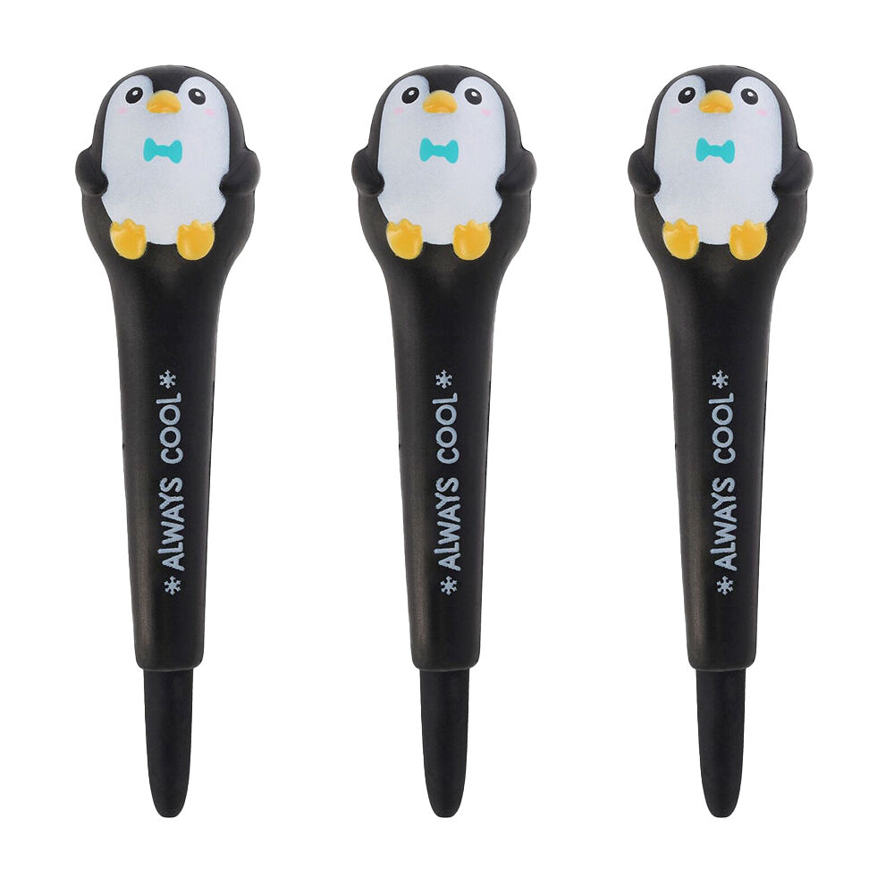 3PK Legami Squishy Gel Pen School/Office Writing Stationery Black Penguin