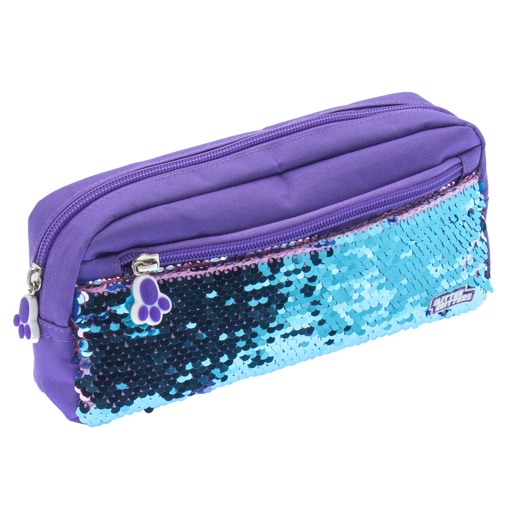 Glitter Critters Pat Me 2 Compartments Sequin Fron Zipper Pencil Case - Purple