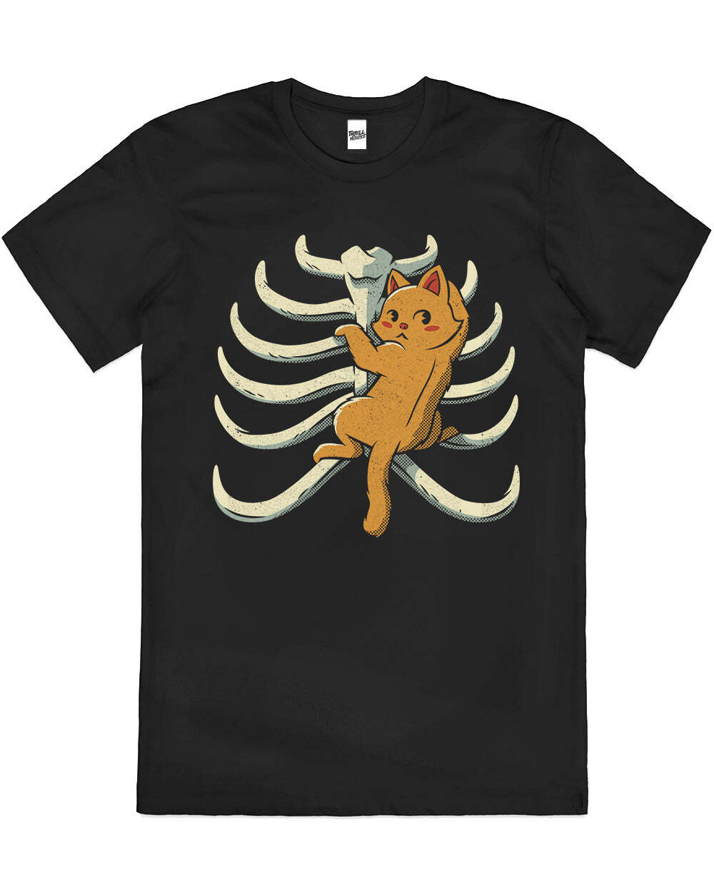Cat Ribs Kitten Animal Pet Skeleton Cotton T-Shirt Black Size 3XL