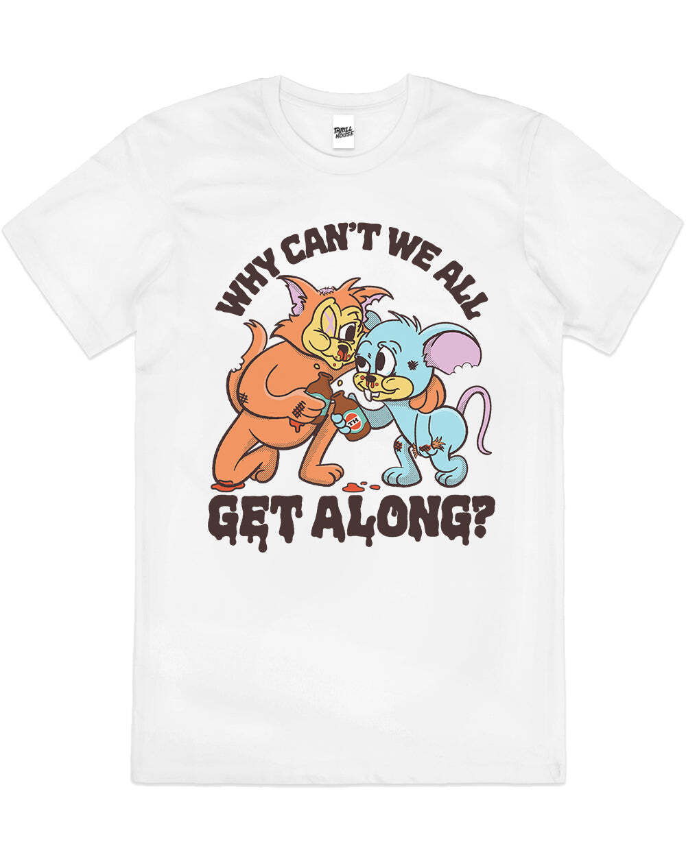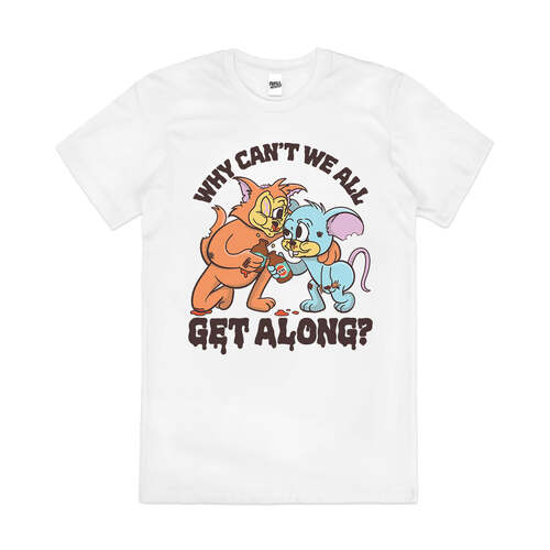 Why Cant We All Get Along Mouse Slogan Cotton T-shirt White Size 4XL