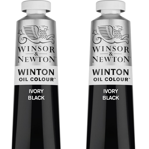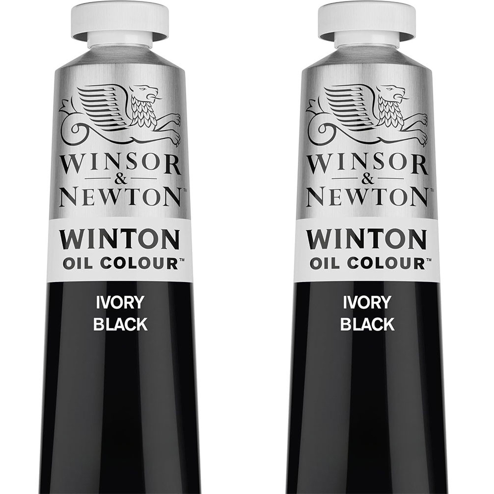 2 x Winsor & Newton 200ml Winton Oil Colour Paint Tube Ivory Black