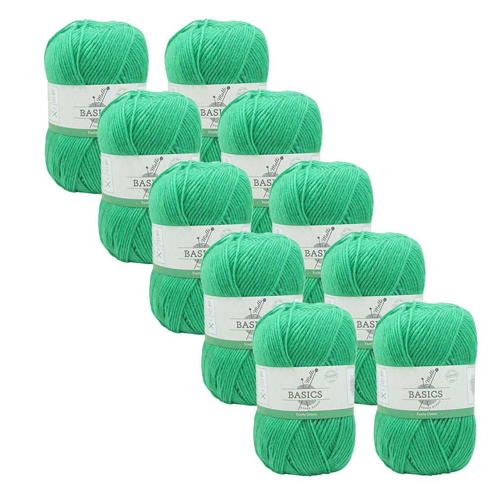 10x Malli Blend Basic 100g Acrylic/Poly Yarn Knitting/Crochet Footy Green