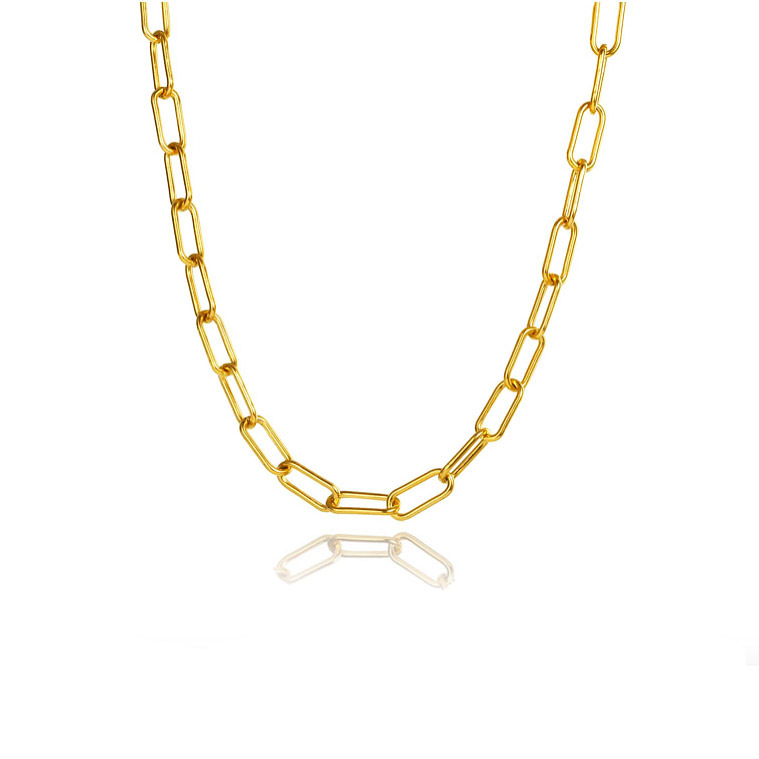 Modern, succinct and edgy, introducing Andy Gold Chain Necklace - an on-trendy gold chain necklace that adds a statement to your contemporary styling. The necklace is crafted in environmentally friendly stainless steel (nickel free) with quality 18K yellow gold plating, giving the piece a rich and smooth gold shine that is also tarnish resistant. Perfect for modern, chic, punk, minimalist, edgy, street style, smart casual, casual and everyday styles.