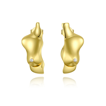 Culturesse Drama Luxury Oversized Single 13cm Pearl Hoop Earrings - Gold