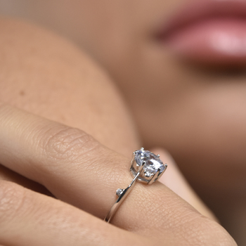 Delicate chic glamour adorned with gorgeous Austrian zircons. Introducing Phaedra Austrian FineZircon Open Ring (Silver) - an artisan crafted light luxury beauty embracing elegance in a timeless way. This design features an 8mm (in diameter) premium quality Austrian zircon crystal embedded in a solid claw setting. Take a close look and you will find subtle yet stunning details with Austrian cubic zirconias embellished on both side of the ring band as well as attached to the main stone (three cubic zirconias on one side and one on the other). This ring is made in solid sterling silver with rhodium plating for hypoallergenic and enduring wear. Due to the softness of sterling silver, this ring can be easily adjusted manually for your ideal fit. Perfect for all personal styles as well as a loving gift for yourself and the one you love. Hypoallergenic, nickel, lead, and cadmium free.