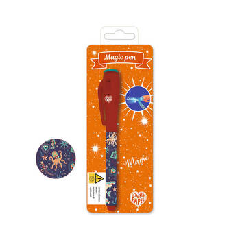 A magical felt tip pen that uses invisible ink that appears in the beam of the UV torch hidden in the lid.