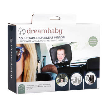 The Dreambaby Adjustable Backseat Mirror allows an easy view of your child in a rear-facing car seat.- The rotating swivel arm makes it easy to adjust the mirror for maximum visibility