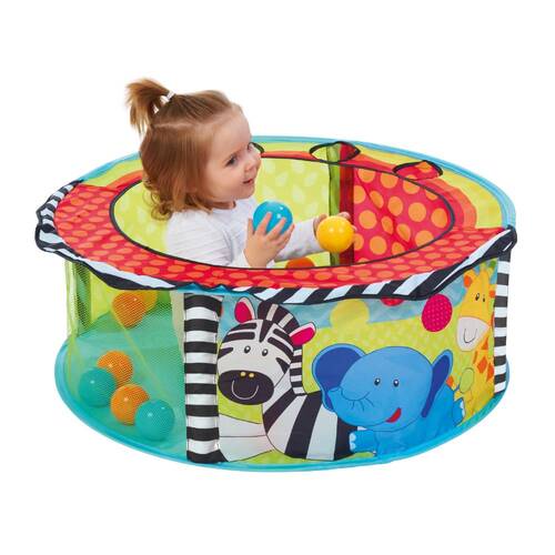 Children will have so much fun playing with this amazing and diverse Early Learning Centre Sensory Ball Pit. This Ball Pit is a safe and exciting place for little ones to sit, roll and play. Perfect for hands-on fun and learning games, it features 20 included colourful balls. Your child can touch the soft textures and explore ball pit. They can also learn how to post the balls for even more fun or play peek-a-boo with the mesh panels. The outside features ribbons for grasping on to for extra-interactive playtimes. Grown-ups will love that this Sensory Ball Pit encourages curiosity through being active, exploring and communicating.