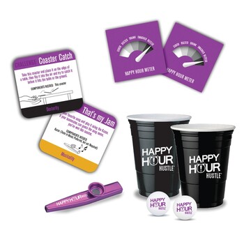 Test your wits, strength, showmanship and agility in the party game that gives Happy Hour a whole new meaning! Break out into teams and race to complete challenges in five unique categories. Be the first team to complete a challenge from each category and win!