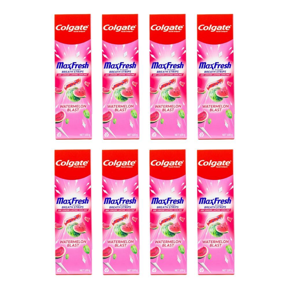 8PK Colgate Toothpaste Max Fresh w/ Mini Breath Strips 100g Watermelon Blast