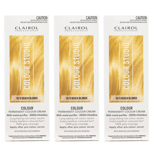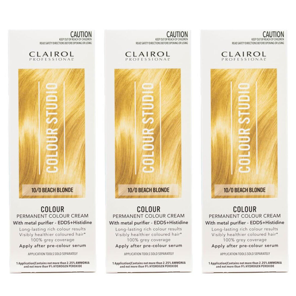 3PK Clairol Professional Permanent Hair Colour Cream 10/0 Beach Blonde Dye