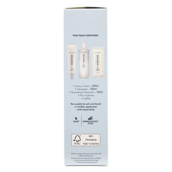 Aqua/Water/Eau, Propylene Glycol, Cetearyl Alcohol, 2-Methoxymethyl-p-Phenylenediamine, Ammonia, Resorcinol, Trisodium Ethylenediamine Disuccinate, Dicetyl Phosphate, Sodium Sulfite, Ceteth-10 Phosphate, Steareth-200, Ascorbic Acid, Parfum/Fragrance, N,N-Bis(2-Hydroxyethyl)-p Phenylenediamine Sulfate, m-Aminophenol, Xanthan Gum, Sodium Hydroxide, Disodium EDTA, 1-Naphthol. Developer: Aqua/Water/Eau, Hydrogen Peroxide, Cetearyl Alcohol, Ceteareth-25, Salicylic Acid, Phosphoric Acid, Disodium Phosphate, Disodium Pyrophosphate, Sodium Stannate, Etidronic Acid. Nourishing Treatment: Aqua/Water/Eau, Bis-Hydroxy/Methoxy Amodimethicone, Stearyl Alcohol, Cetyl Alcohol, Stearamidopropyl Dimethylamine, Glutamic Acid, Malic Acid, Parfum/Fragrance, Benzyl Alcohol, Benzyl Benzoate, EDTA, Histidine, Cocos Nucifera (Coconut) Oil, Sodium Hydroxide, Sodium Chloride, Hexyl Cinnamal, Linalool, Magnesium Nitrate, Trimethylsiloxysilicate, Aloe Barbadensis Leaf Juice, Methylchloroisothiazolinone, Magnesium Chloride, Methylisothiazolinone, Ascorbic Acid, Citric Acid, Potassium Sorbate, Sodium Benzoate, Sodium Sulfite.