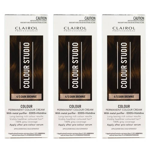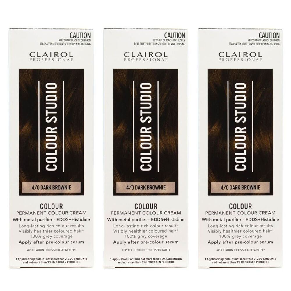 3PK Clairol Professional Permanent Hair Colour Cream 4/0 Dark Brownie Dye