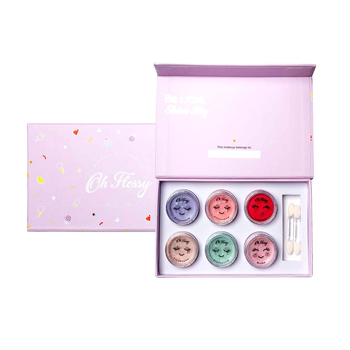 Packaged in a beautiful sprinkle carry case - very fancy! Perfectly pairs with Oh Flossy's Makeup Sets.
