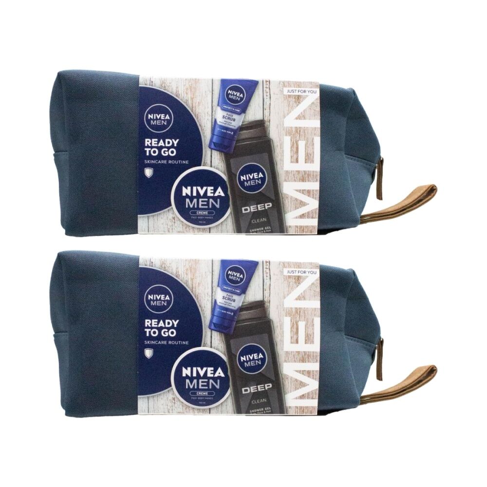 2x 3PK Nivea Mens Ready to Go Skincare Gift Bag w/Shower Gel Face Scrub Creme