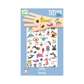 Add some fun and mischief to your child's day with these 50+ Little Critters Temporary Tattoos! The set includes two sheets of tattoos featuring playful critters. They are pre-cut for easy use; simply apply a bit of water to transfer the tattoos onto the skin. Dermatologically tested, these tattoos are safe for children and can be easily removed with soap and water or a mild make-up remover. Perfect for parties, playdates, or just for fun, these tattoos are sure to delight kids of all ages.