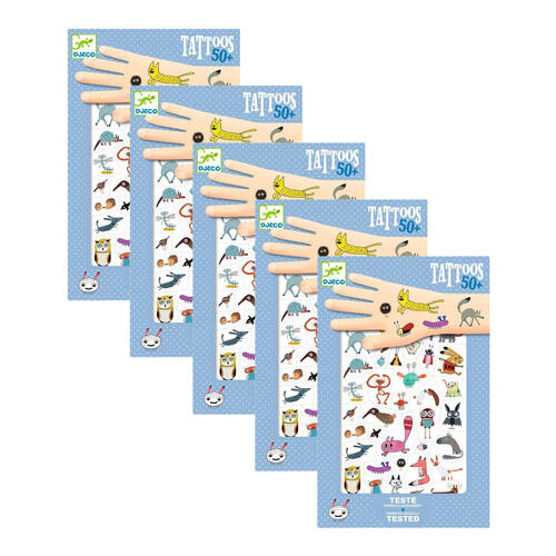 5PK 50pc Djeco Kids Little Crittters Pre Cut Press On Temporary Tattoos 3y+
