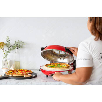 Healthy Choice 12in Electric Pizza Oven w/Thermal Control Removable Stone Red