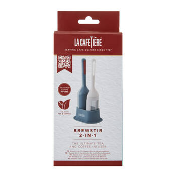 The La Cafetière Brewstir 2-in-1 Infuser provides a simple, streamlined solution for easily brewing your favourite hot beverages. Its innovative design features a multi-filter system with a fine mesh screen that optimises the extraction of all the rich flavours from your grounds or leaves. The infuser's built-in strainer allows you to seamlessly pour a smooth, sediment-free beverage directly into your mug. It is dishwasher-safe, and the accompanying storage stand also helps to keep your Brewstir tidy, minimising clutter in your kitchen.