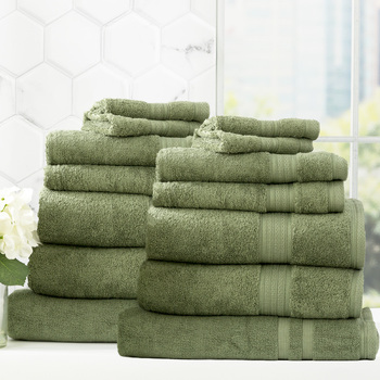 2pc Renee Taylor Stella 650GSM Super Soft Bamboo Cotton Bath Sheet Jade