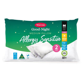 These Australian made Tontine Good Night Allergy Sensitive Pillows have been designed to assist those with asthma and allergies who prefer pillows with a medium profile and medium feel, which is ideal for sleeping on your back or side., and like their pillows to have a regular height and nice balance between support and comfort.