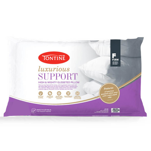 This quality Australian made Tontine Luxurious Support pillow has a high profile and firm feel, making it ideal for side sleepers, people with large frames, or those that just like extra height and extra support from their luxury pillows. For the benefit of asthma and allergy sufferers, it’s also treated with Anti-Microbial protection to inhibit the growth of mould, bacteria and dust mites.