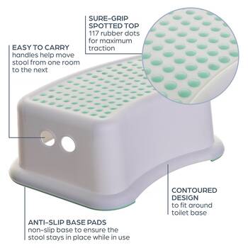Dreambaby Step Stool Aqua Dots: Dreambaby®Step Stool with sure-grip top helps toddlers take those first steps towards independence. A great help with toilet training, brushing teeth or helping mum. Sure grip Top contoured to fit around toilet base Gives children a sense of independence Max Weight: 80kg Approx Dimensions: 38 x 27 x 14cm Includes: 1 x Dreambaby Step Stool Aqua Dots Warning: Never leave children unattended Use only on flat surface Do not place this product on elevated surface