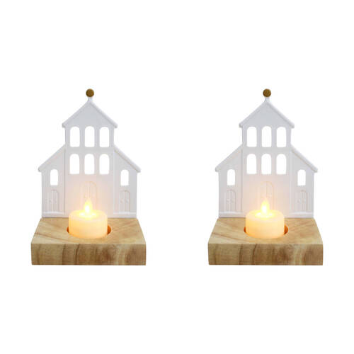 2PK LVD Porcelain Tealight Candle Holder Display Church 14cm - White
