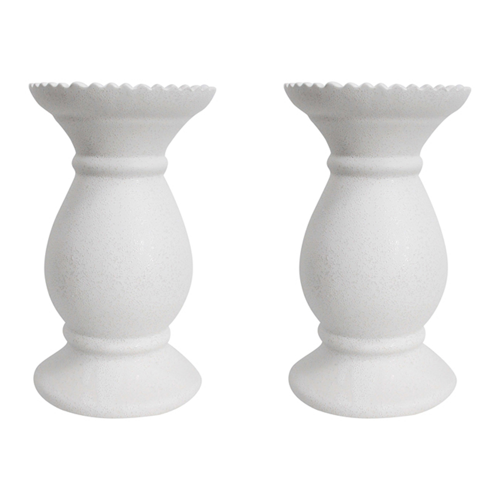 2PK Stoneware Ceramic Lopez 22.5cm Pillar Candle Holder Medium - Rustic White