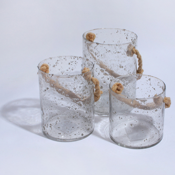 Maine & Crawford Ilina 19cm Beach Glass Cylinder w/ Rope Handle - Clear