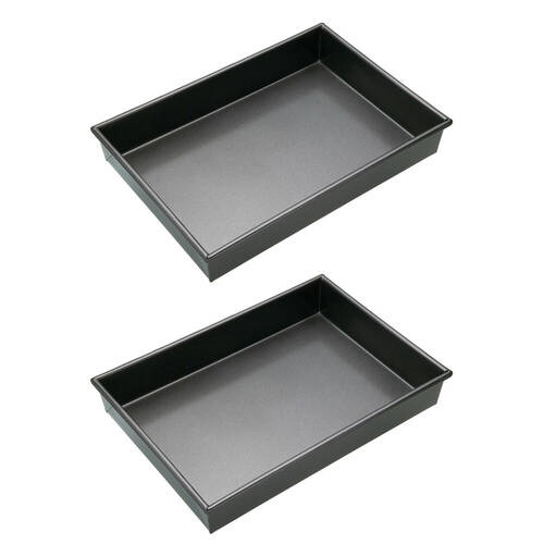 2x Mastercraft 35x24cm Heavy Base Non-Stick Rectangular Deep Cake Pan - Black