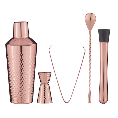 5pc Spencer Hammered Stainless Steel Cocktail Set - Copper