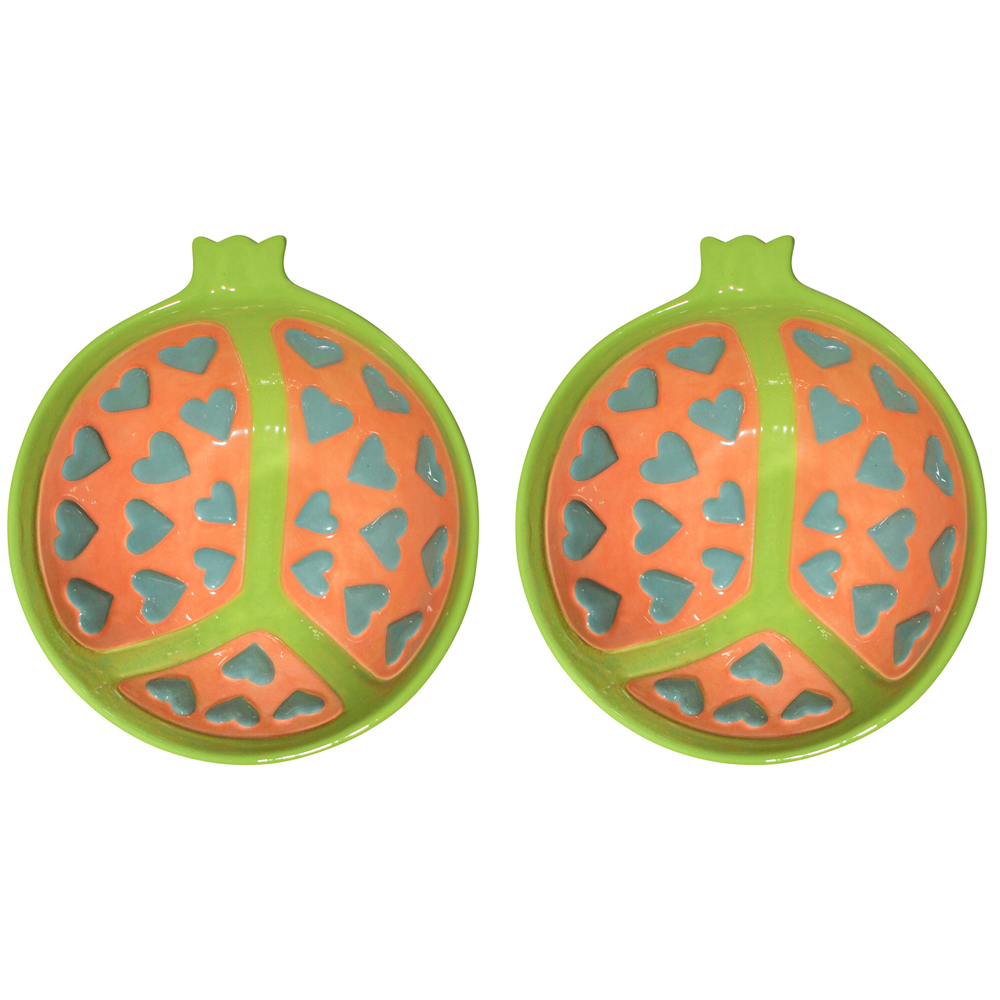 2PK Ceramic Pomegranate 17cm Salad/Dessert Bowl Round - Green/Orange