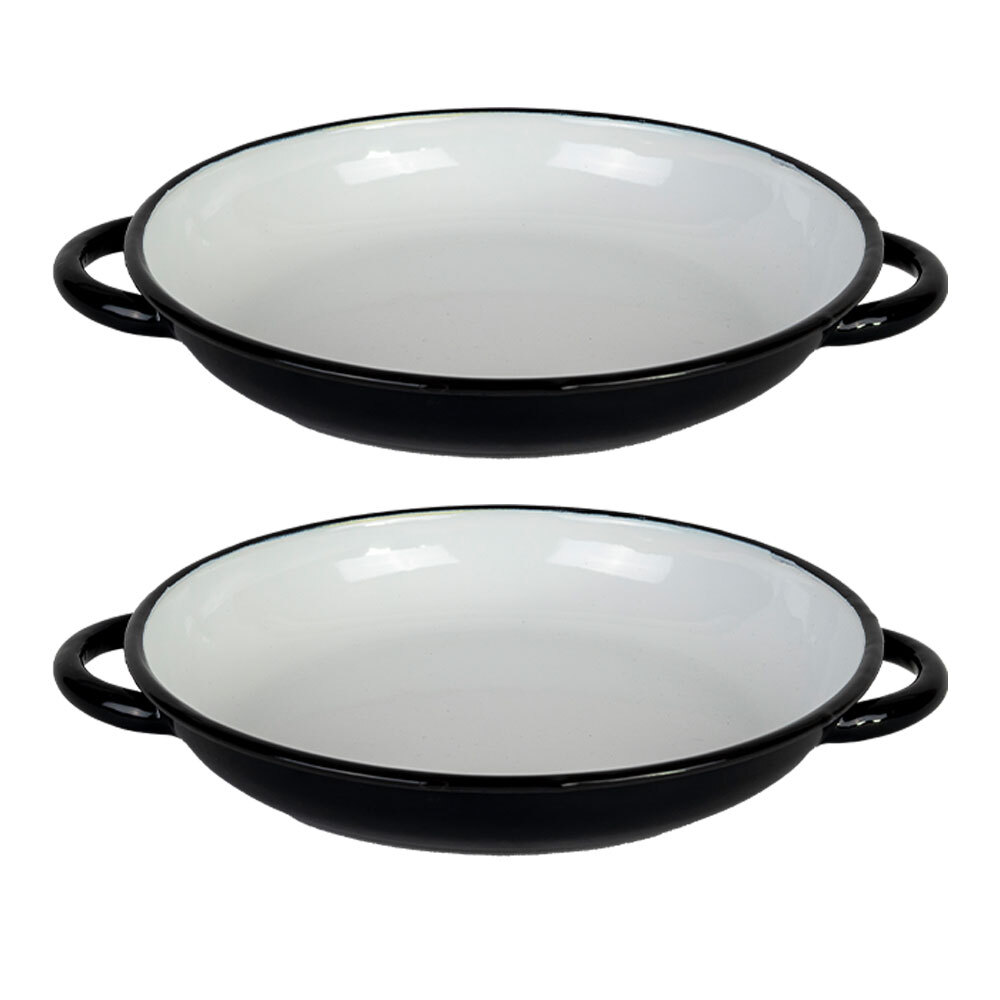 2x Urban Style Enamelware 24cm Ragout Plate w/ Handle - Black/White
