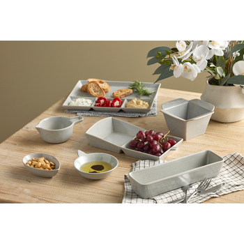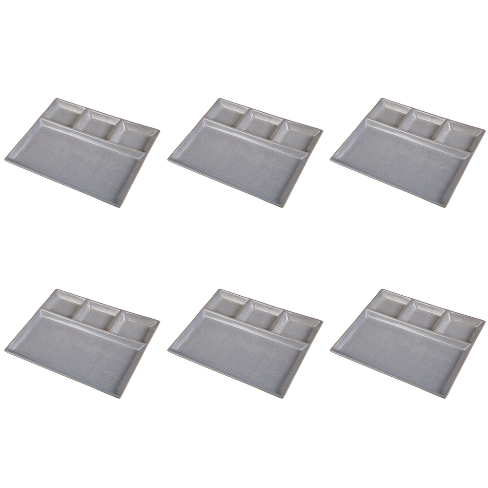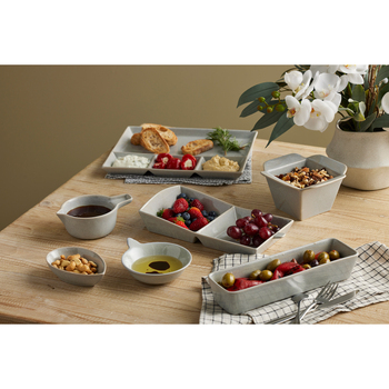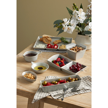 6PK Davis & Waddell Nori Porcelain Divided Platter Large 30x24cm - Light Grey